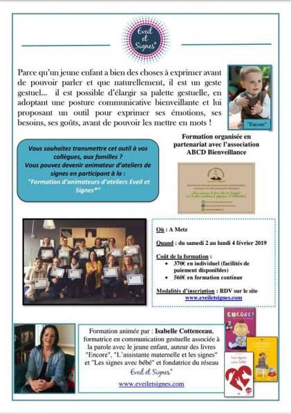 L’association ABCD a le plaisir de vous proposer une formation d’animateur en communication gestuelle associée à la parole "Eveil et signes" .