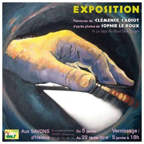 Le célèbre bar culturel de Strasbourg "Savons d’Hélène" 6 rue Sainte Hélène, présente du 5 Janvier au 22 Février 2018 une exposition exceptionnelle car celle-ci rassemble le talent de deux amies, une photographe de jazz Sophie LE ROUX et une jeune peintre Clémence CADIOT. Leur exposition commune aux Rencontres Internationale d’Arles s’est fait remarqué par son originalité et le détail des photographies et peintures.