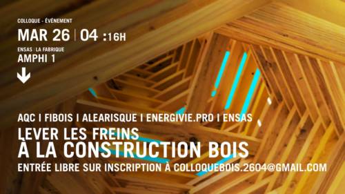 MARDI 26 AVRIL À 16H : Colloque "Lever les freins à la construction bois" par l’AQC, Fibois, Energivie.pro, Aléarisque et l’ENSAS / Sur réservation à colloquebois.2604@gmail.com