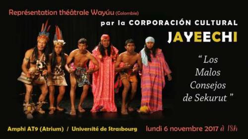 Cette compagnie Wayuu (ethnie du département de la Guajira au Nord de la Colombie), du conte "Les mauvais conseils de Sekurut" collecté par Ramon Paz Ipuana, à partir de la tradition orale Wayuu. L’œuvre des Jayeechi relève de la poésie et transcende les langues et l’identité