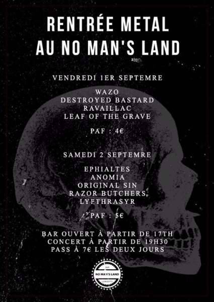 Le Samedi 02 Septembre 2017 le No Man’s Land recevra Lyfthrasyr / Razor Butchers / Anomia / Ephialtes.