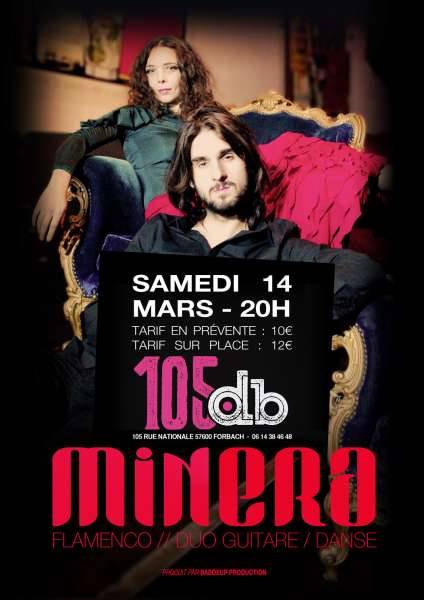 Minera c’est la rencontre de 2 artistes issus de différents horizons. La danse, la guitare, sont complices pour bousculer les codes traditionnels et proposer un flamenco qui flirte avec le jazz, les rythmiques cubaines, le rock et la danse contemporaine. Après s’être fait connaître dans le Grand-Est (foire éco-bio d’Alsace, au Grès du Jazz), Minera développe sa dimension nationale avec notamment une date dans la programmation officielle du prestigieux festival Arte Flamenco.