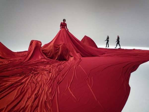 Un monde parfumé est une performance de l’artiste Norico Sunayama qui remet en question les codes de l’esthétique entre attraction et danger, séduction et fragilité. Le public est invité à se faufiler sous une robe rouge écarlate conçue et portée ici à Metz par l’artiste, qui couvre le sol de la galerie, créant un lieu d’inconfort entre intimité et voyeurisme. La robe devient une partie et extension du corps de Norico Sunayama, qui souhaite se présenter sans protection aux inconnus.