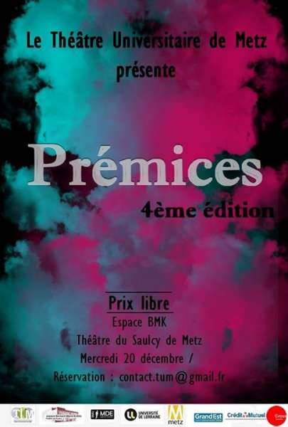 Le TUM présente cette année une nouvelle édition de Prémices. Cette soirée est un événement majeur dans l’année universitaire du TUM puisque c’est un laboratoire de premières mises en scène. L’intérêt est de présenter des travaux pour la première fois de jeunes étudiants sortant de nos ateliers de jeu et d’écriture mais aussi de personnes externes à ces ateliers.