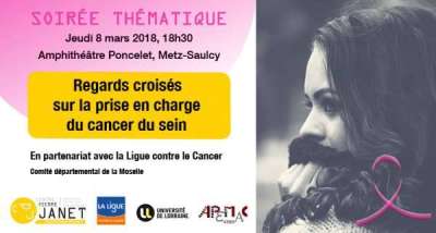 Cette soirée exceptionnelle, organisée en partenariat avec le Comité mosellan de la Ligue contre le cancer, l’Université de Lorraine, le laboratoire EPSAM/APEMAC EA 4360 et le Centre Pierre Janet, réunira des spécialistes de plusieurs domaines médicaux ayant tous comme objectif la prise en charge des patientes atteintes par le cancer du sein et la lutte contre la maladie.