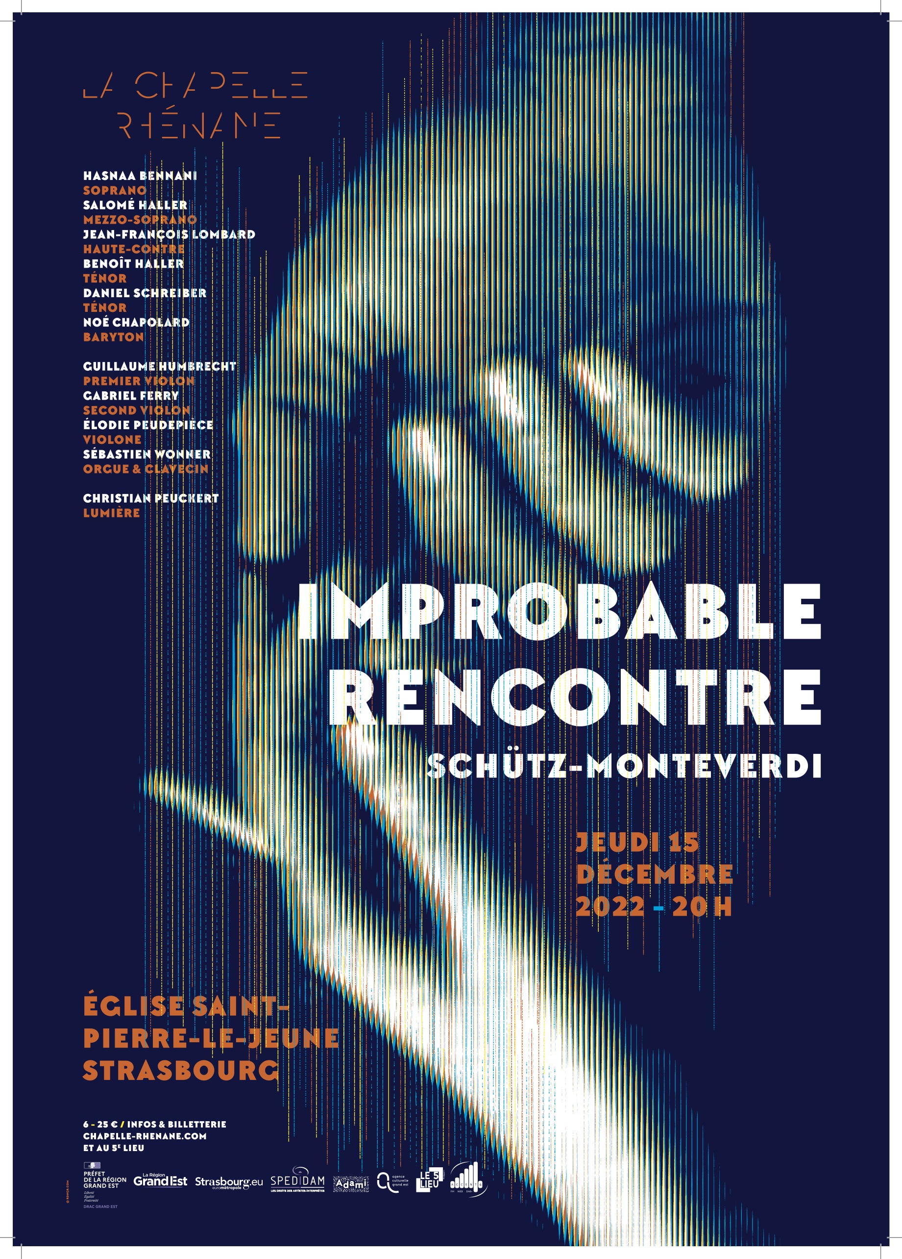 À l’occasion du 350ème anniversaire de la mort d’Heinrich Schütz, la Chapelle Rhénane se plonge, une fois n’est pas coutume, dans l’œuvre de son compositeur favori et s’intéresse à tout ce qui le lie à l’italien Claudio Monteverdi. Les deux compositeurs ont plus en commun qu’on ne le pense spontanément. Après des études de composition avec Giovanni Gabrieli à Venise, Schütz retourne à Dresden et intègre la révolution musicale baroque ; mieux encore, il opère une splendide synthèse entre le style italien et l’esprit de la Réforme. Un second voyage à Venise laisse planer le doute quant à une hypothétique rencontre avec Monteverdi ; ce qui est sûr, c’est que les deux compositeurs sont spectaculairement proches dans leur capacité à émouvoir, à transmettre un message irradiant et empli d’humanité. Ils conservent pourtant les spécificités qui font de chacun d’eux un génie à part entière.