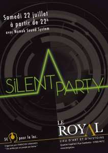 Le concept de la « silent party » permet à chacun d’écouter l’ambiance musicale de son choix et faire la fête grâce à un casque audio. Une expérience à vivre au Royal le 22 juillet 2017.