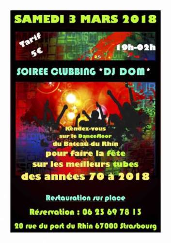 VENEZ VOUS DÉHANCHER SUR LE DANCEFLOOR DU BATEAU DU RHIN POUR UNE SOIRÉE 100% CLUBBING ANIMÉE PAR DJ DOM.