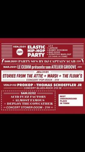 Concert des groupes Stories from the Attic (pop-rock), Mardi (chanson francaise), et The Flouk’s (rock) à l’Elastic Bar le 31 janvier à partir de 21h!