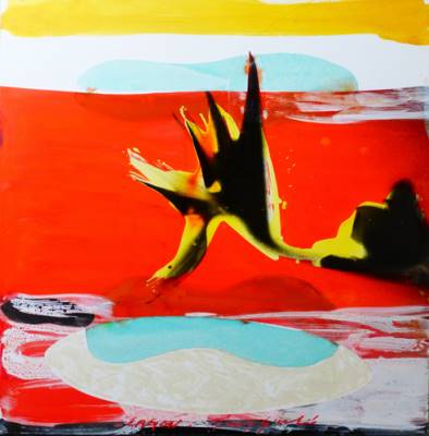 Souvent il prend des photographies en noir et blanc, un peu floues, qu’il aggrandit et transfigure par l’apport d’encres, de pigments, de poudre de métal... La couleur est généreuse, et l’oeuvre obtenue traduit un immense bonheur de vivre.